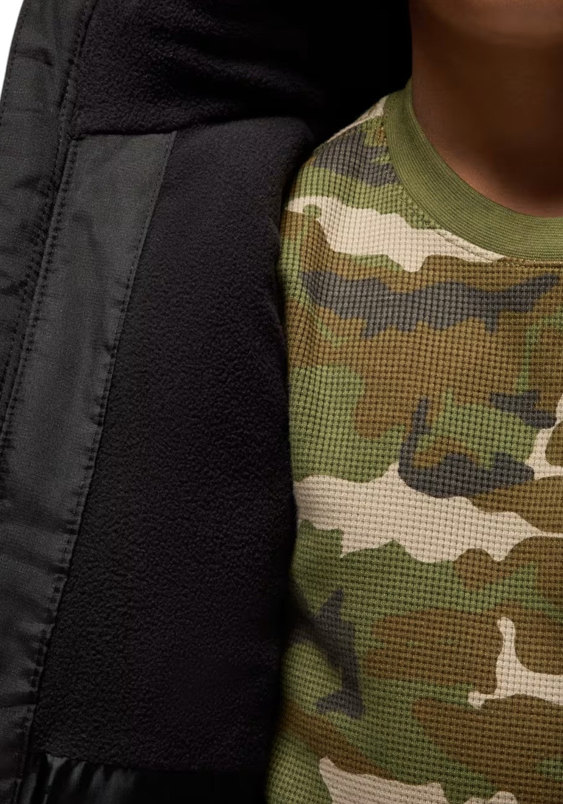 Questa giacca è un capo essenziale per la stagione fredda, realizzata in poliestere intrecciato e con motivo trapuntato all-over, imbottita in morbida piuma sintetica per un calore accogliente. Il taglio ampio e la chiusura con zip integrale facilitano il vestirsi a strati, le tasche laterali offrono spazio per riporre piccoli oggetti, mentre il cappuccio e la finitura impermeabile aiuteranno i più piccoli a rimanere asciutti anche sotto la pioggia leggera.