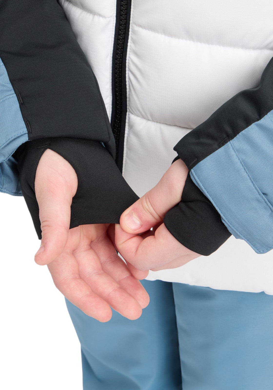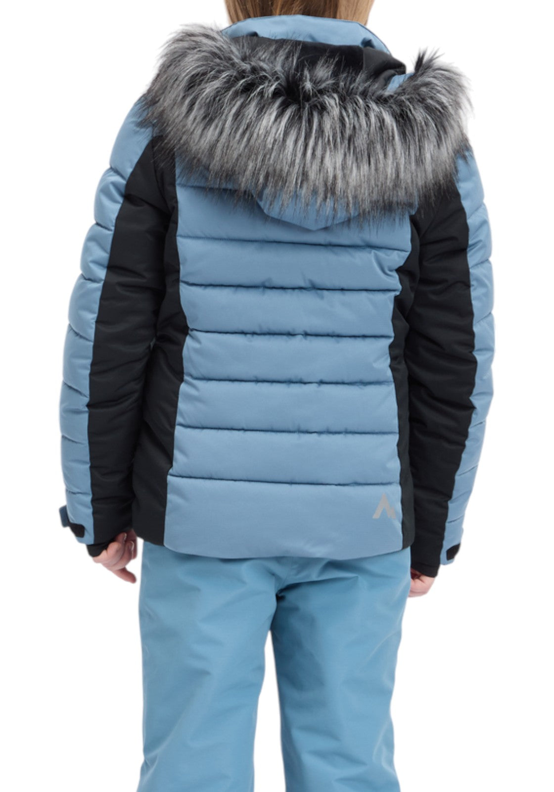 McKinley Geena II G è una giacca da sci da bambina. È realizzata in un materiale a doppia laminazione che si asciuga rapidamente e trasporta bene l'umidità. La membrana Aquabase offre protezione dagli agenti atmosferici. L'isolamento Fellex offre calore e comfort durante le attività. La giacca è dotata di cerniera, cappuccio rimovibile con bordo in pelliccia sintetica rimovibile e cinque tasche. All'interno è dotata di una speciale barriera che impedisce l'ingresso della neve.