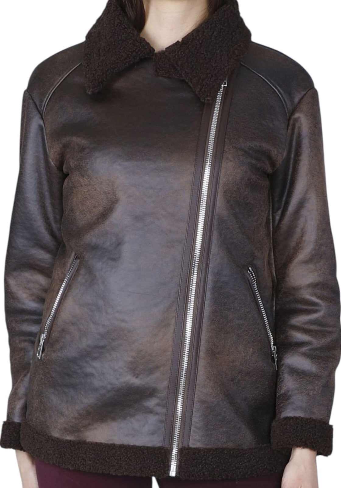 Giubbotto effetto shearling con zip asimmetrica caldo e avvolgente perfetto per look casual invernali. design grintoso e vestibilità comfort per uno stile urbano e contemporaneo. vestibilità comfort.
