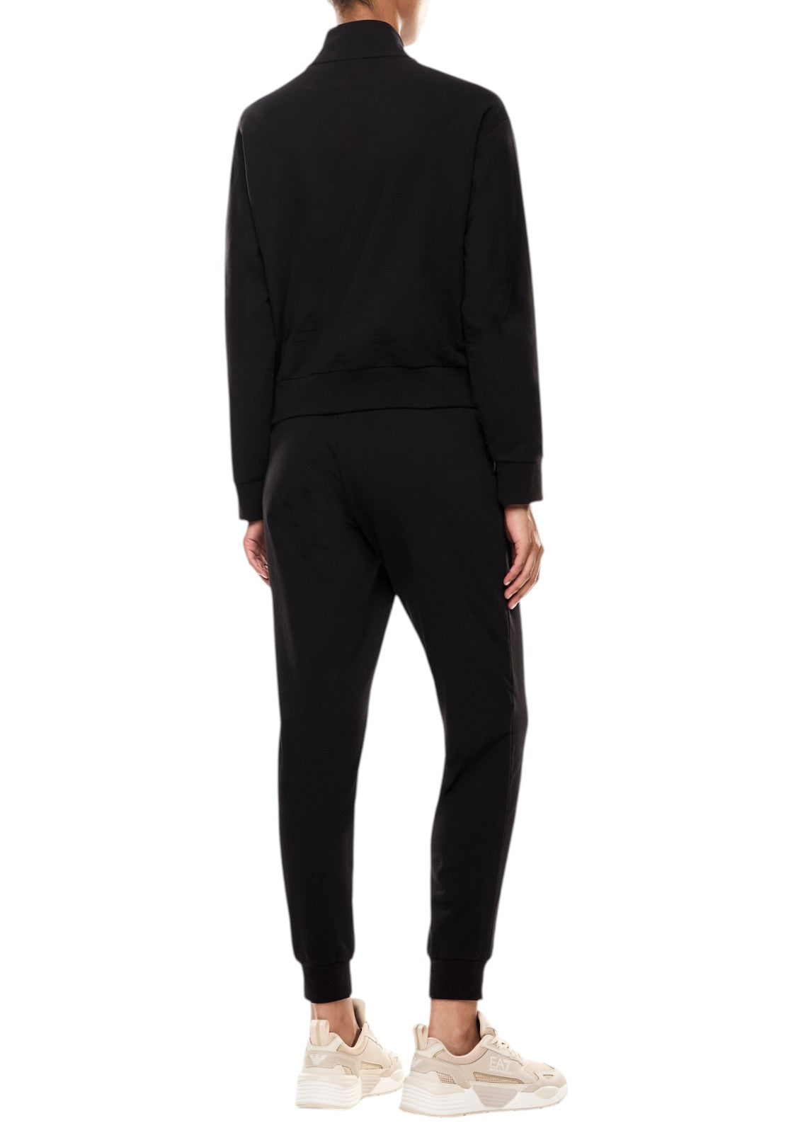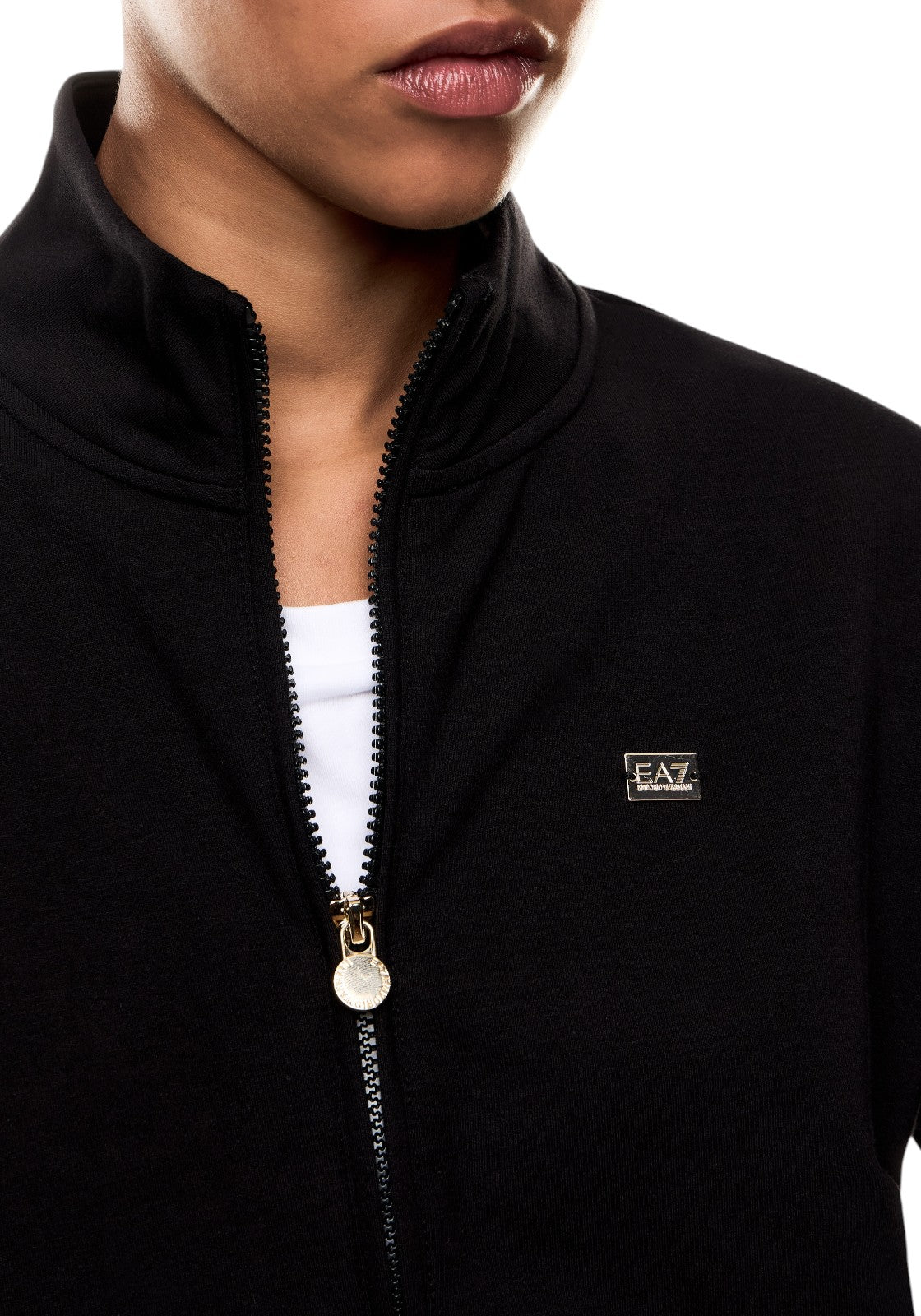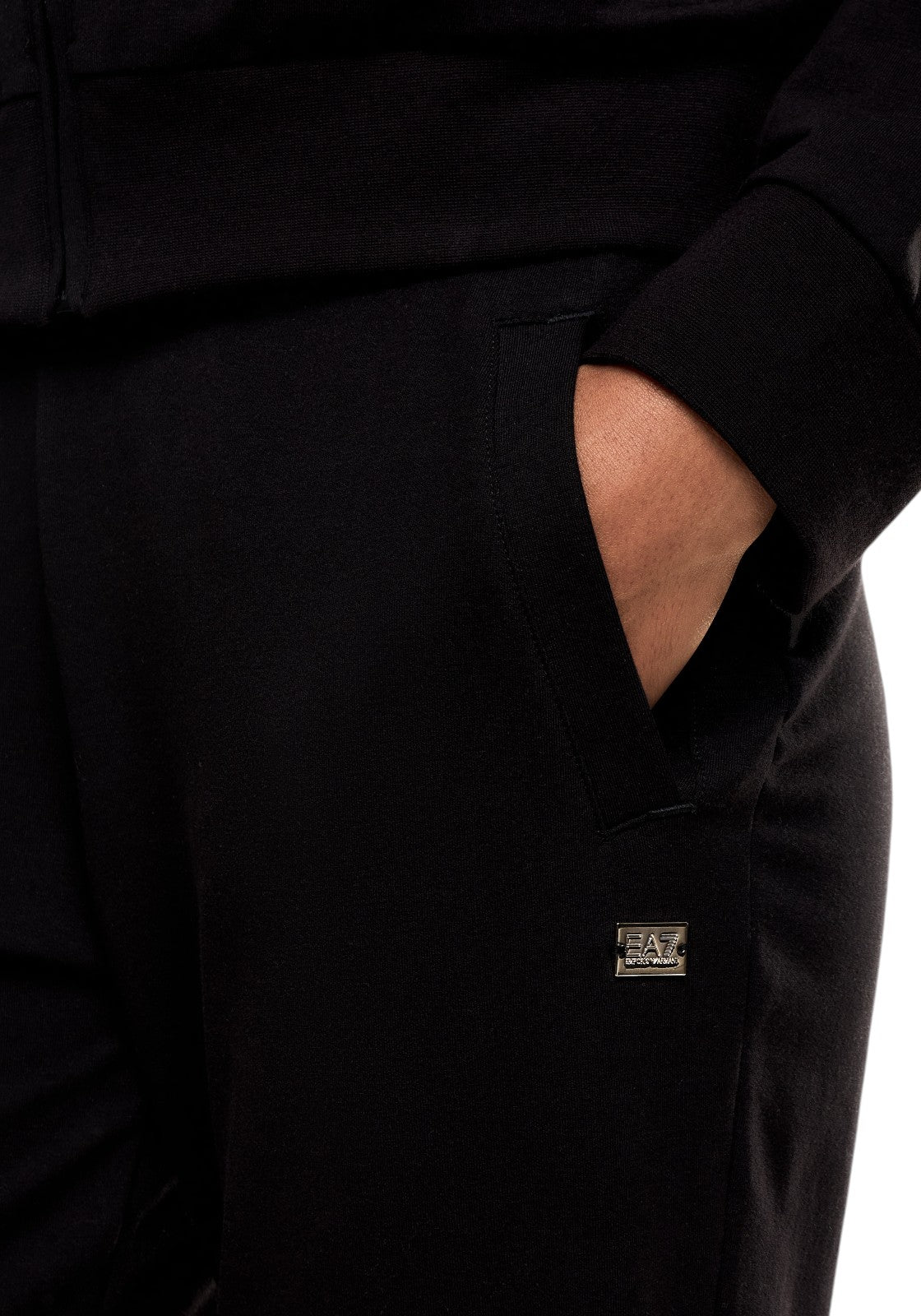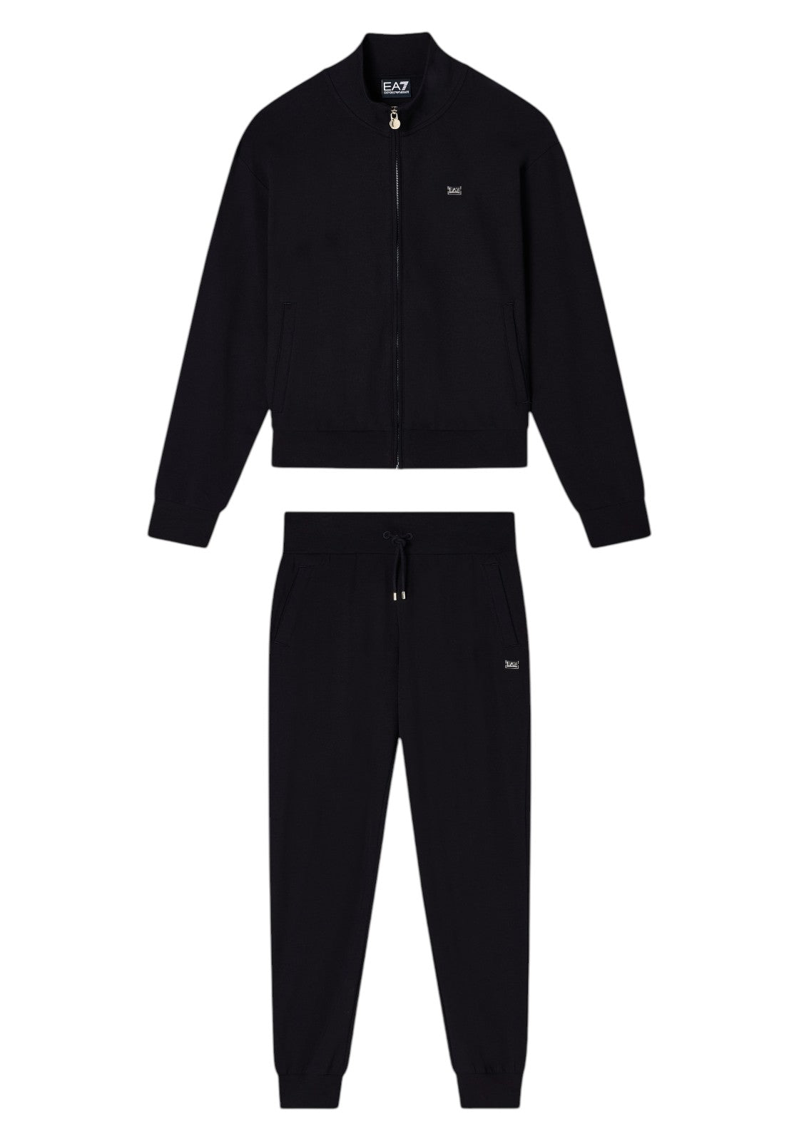 Linee essenziali e pulite per questa tuta caratterizzata dall'iconico logo EA7 in metallo con finitura gold presente sia sulla felpa e che su i pantaloni jogger. Un modello femminile in cotone elasticizzato, ideale per assicurarti comfort sia durante le tue sessioni di allenamento sia nei momenti di relax. Perfetta da abbinare alle t-shirt di collezione per creare total look versatili e di tendenza.