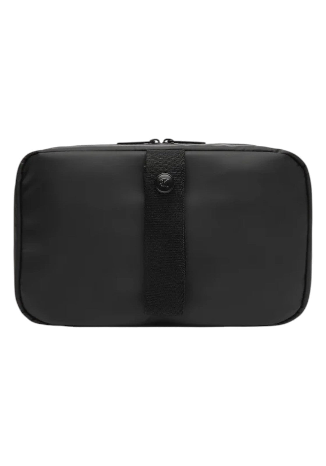 Beauty case compatto in tessuto tecnico (60 % poliestere riciclato, 40 % poliuretano) dotato di appendino interno e chiusura con zip. Colore nero elegante (UB1), ideale per organizzare prodotti da bagno o cosmetici durante i viaggi.