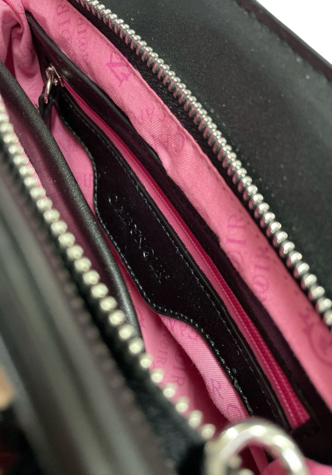Tracolla elegante e luminosa firmata CafèNoir, caratterizzata da un design compatto e femminile. La superficie è interamente ricoperta da paillettes nei toni del nero, argento e champagne, creando un effetto cangiante e raffinato. Presenta chiusura superiore con dettaglio logo metallico, finiture in ecopelle nera e tracolla regolabile per una portabilità versatile. Perfetta per aggiungere un tocco glamour a look serali o per occasioni speciali.
