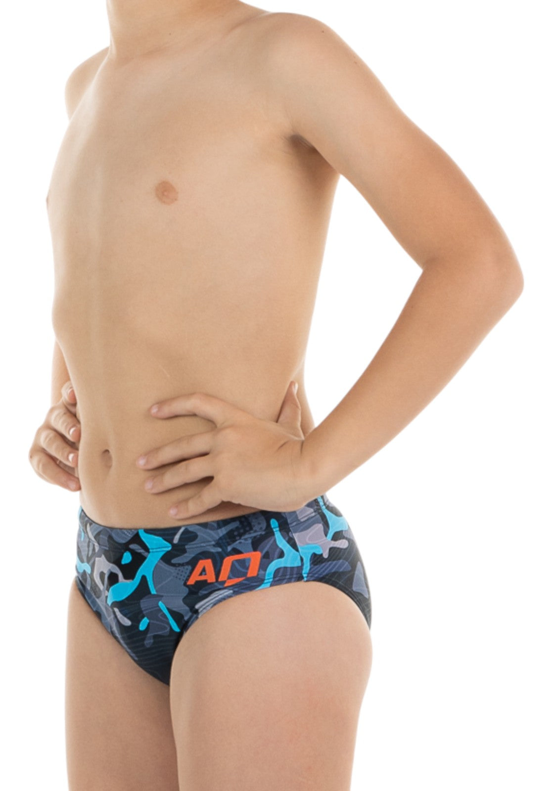 Costume Aquarapid slip bimbo ideale per la piscina, il mare, le attività in acqua e gli allenamenti del giovane atleta. Una nuova stampa digitale camouflage con logo AQ in contrasto colore orange vibes, caratterizza sia sul fronte che il retro questo modello dallo stile sportivo e dinamico. Realizzato in tecno-tessuto ecosostenibile VITA con filo di Nylon rigenerato Econyl, ha una resistenza più che doppia agli attacchi del cloro, offre compressione e comfort, ideale anche per i lunghi allenamenti. Morbida fodera interna garantisce comfort e discrezione, piacevole contatto con la pelle. Vita elasticata con cordino interno regolabile, per un adeguata personalizzazione della vestibilità.