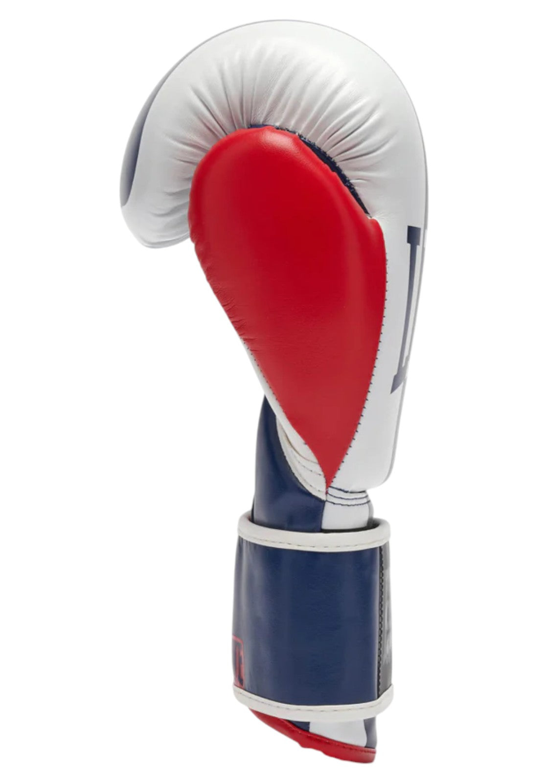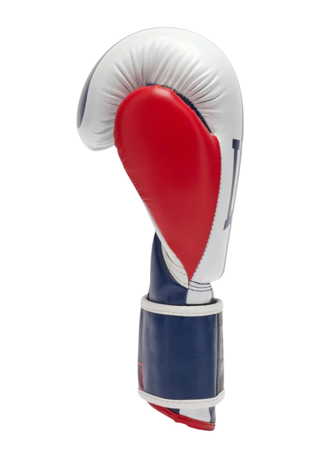 Guantoni da boxe Leone 1947 Realizzati in resistente similpelle, offrono un’imbottitura protettiva ad alta densità e chiusura a strappo per la massima stabilità del polso. Design tricolore rosso, bianco e blu, ideale per allenamenti e sparring.