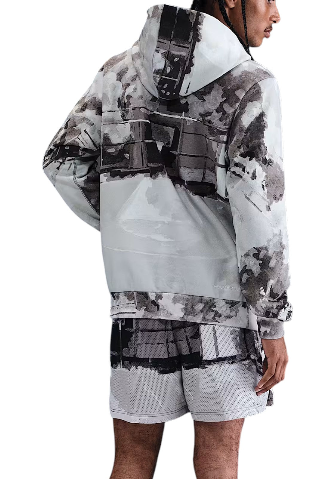 Il basket è arte e il campo è la tua tela. Questa felpa con cappuccio in pile di peso medio con tecnologia Therma-FIT attinge all'arte e alla creatività di questo sport.