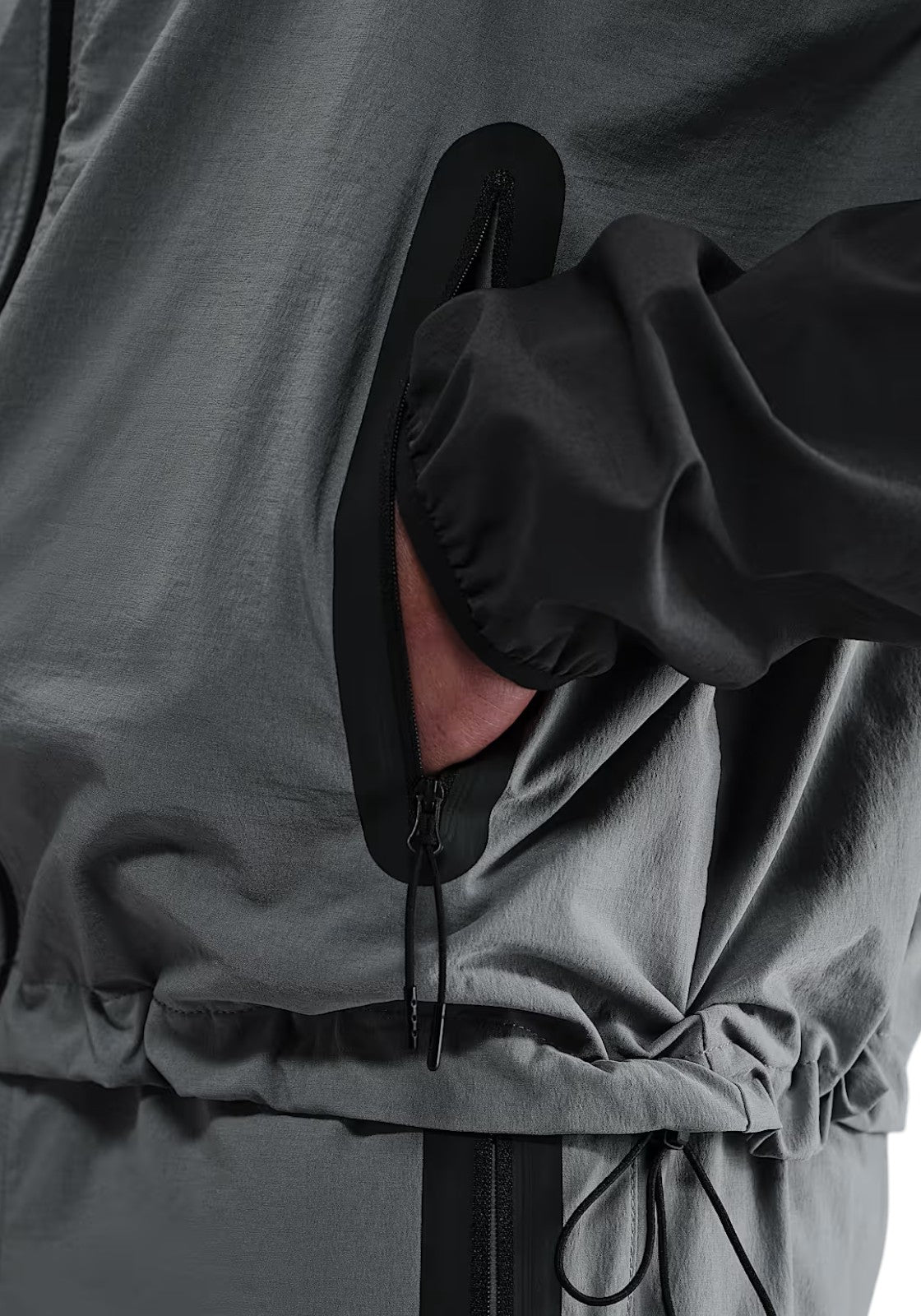 Realizzata in un materiale elasticizzato e con un design articolato, la giacca in tessuto Nike Tech offre una copertura ideale in movimento. I cordini elastici consentono di personalizzare il fit su bordo e cappuccio.