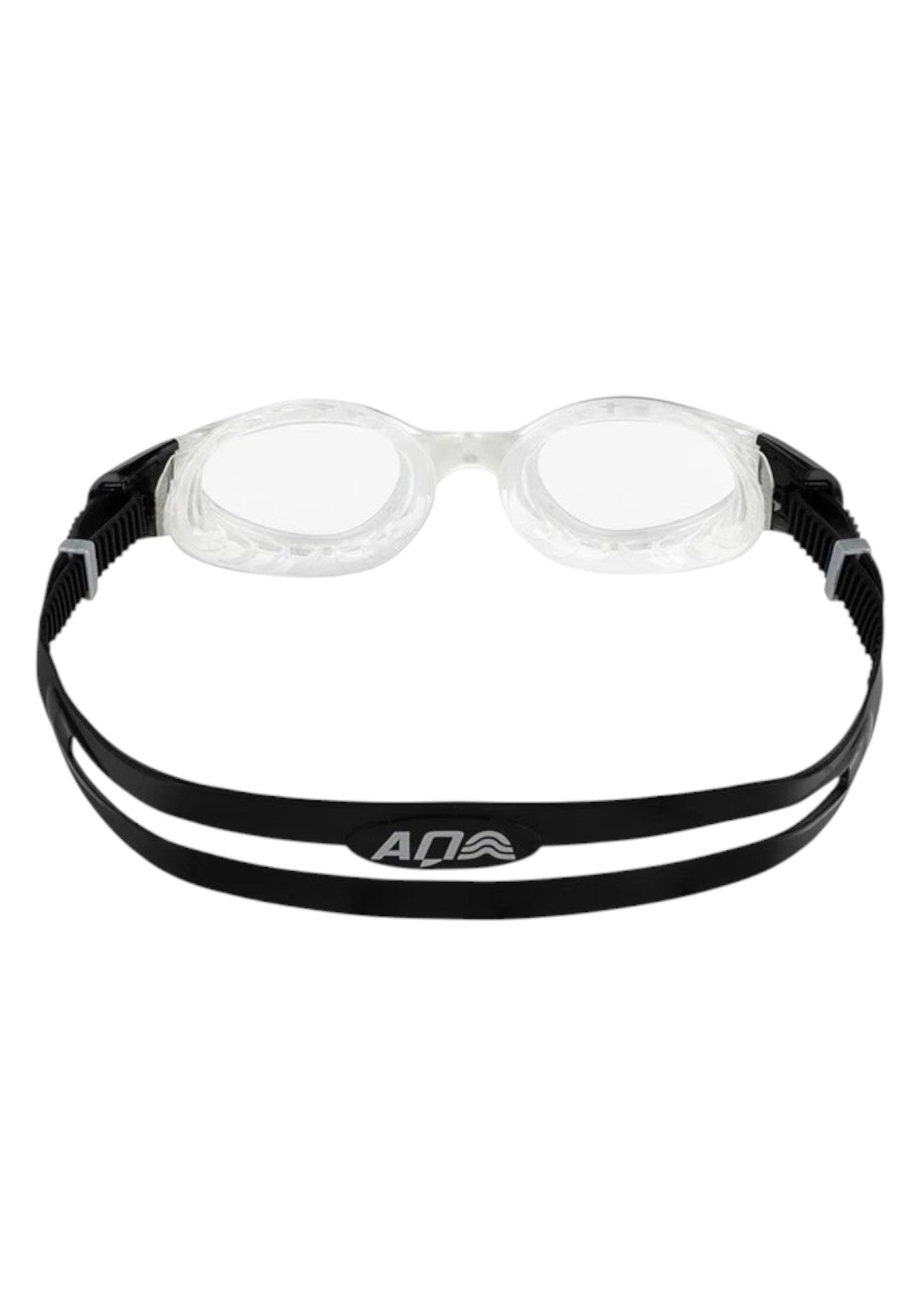Occhialini da nuoto Aquarapid con lenti trasparenti e cinturino nero regolabile. Design ergonomico per un’aderenza sicura e confortevole, con guarnizioni in silicone per una tenuta ottimale. Ideali per l’allenamento in piscina e l’uso regolare.