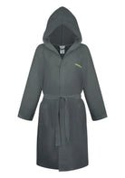 Accappatoio Speedo con cappuccio in tessuto assorbente, colore grigio. Cintura in vita, due tasche applicate e bordi rifiniti; logo a contrasto sul petto. Perfetto per piscina, spiaggia e post-doccia.