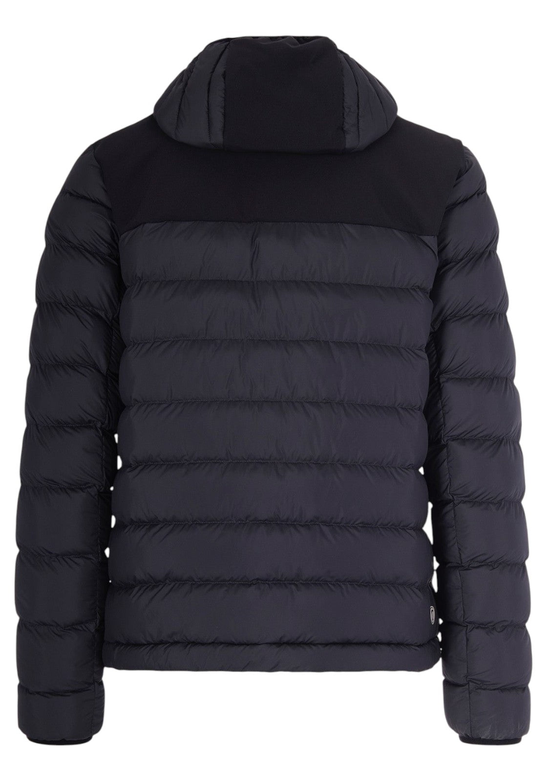 Giacca con cappuccio Outdoor Comfort realizzata in morbido tessuto opaco con trattamento idrorepellente e inserti in softshell elasticizzato, impermeabile e traspirante. Imbottitura in ovatta ecologica.