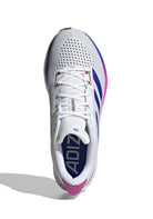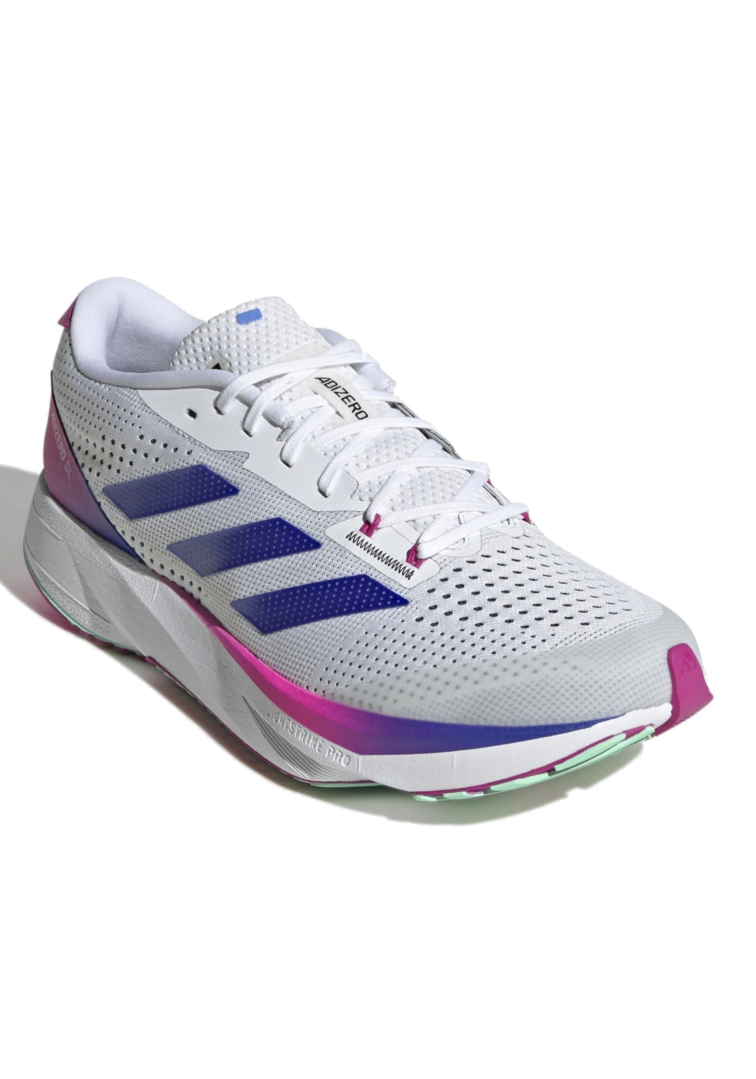 La tomaia tecnica e veloce presenta dettagli in morbidissimo mesh tecnico in punti chiave. Il tallone e la linguetta imbottiti migliorano il comfort e la calzata, mentre la scritta ADIZERO sul tallone completa il look. La suola integrale in gomma assicura il massimo grip su qualsiasi superficie, in ogni condizione. La tomaia è composta per almeno il 50% da materiali riciclati.