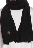 lavorato a coste piatte,con logo in tessuto cucito ad una estremità