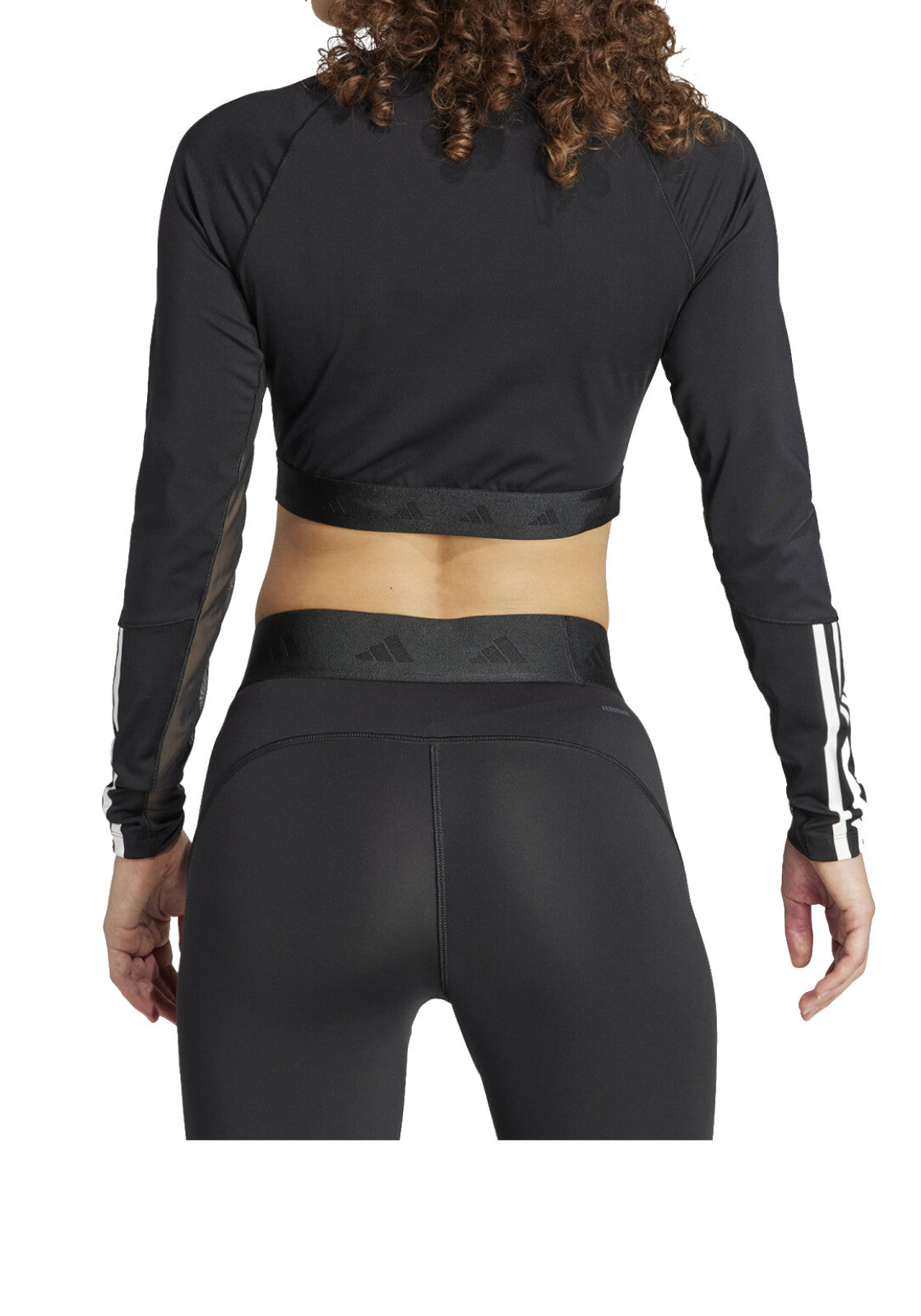 Le maniche lunghe con 3 strisce aggiungono un tocco di atletismo, mentre il taglio corto è perfetto da abbinare ai vostri legging o pantaloncini preferiti.