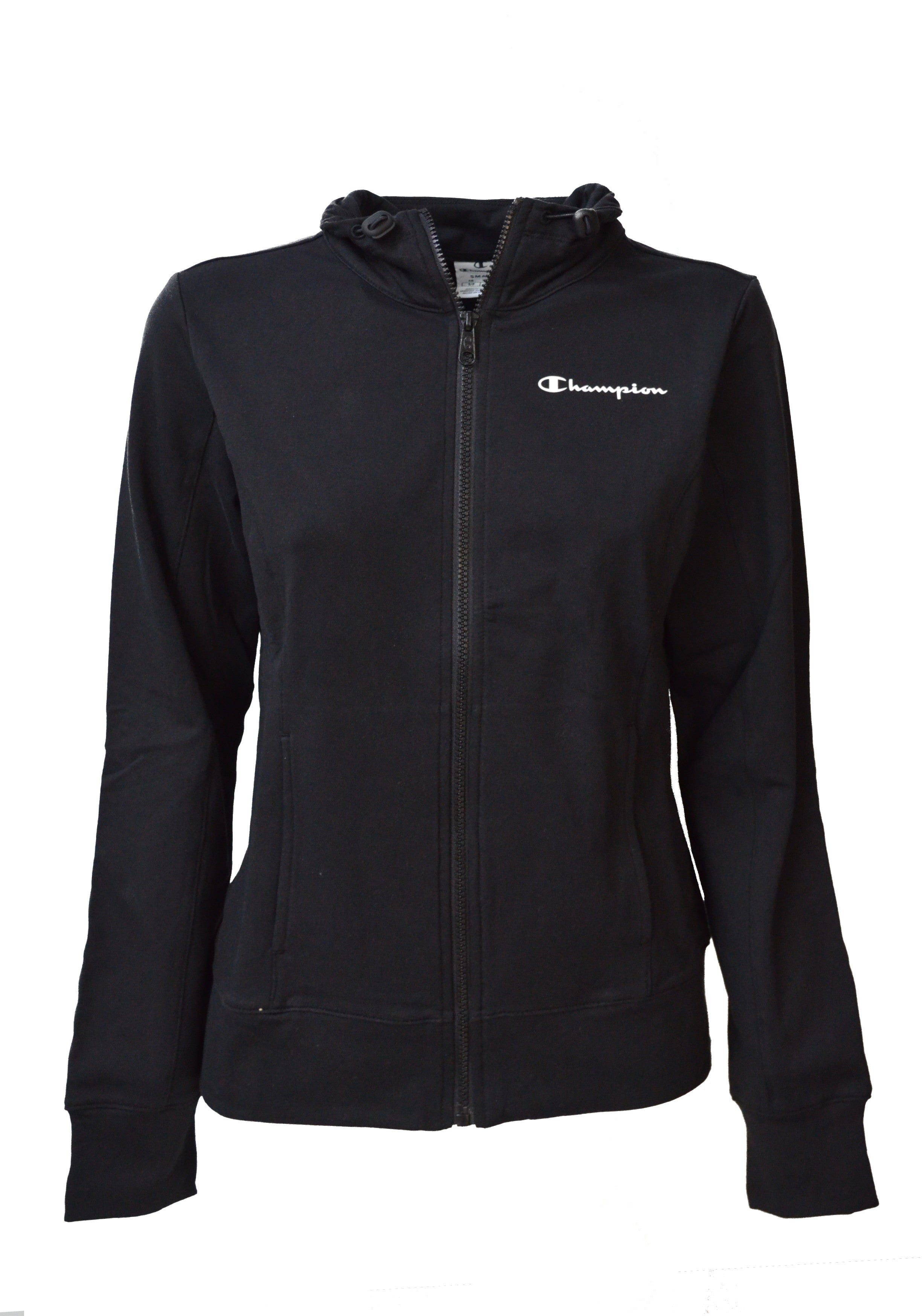 coulisse interna, orli dritti e felpa con chiusura full zip, tasche e polsini.