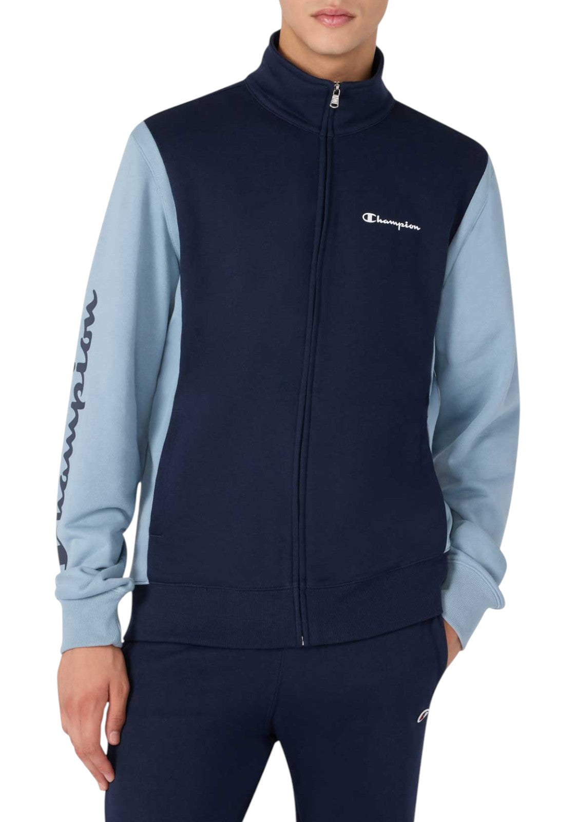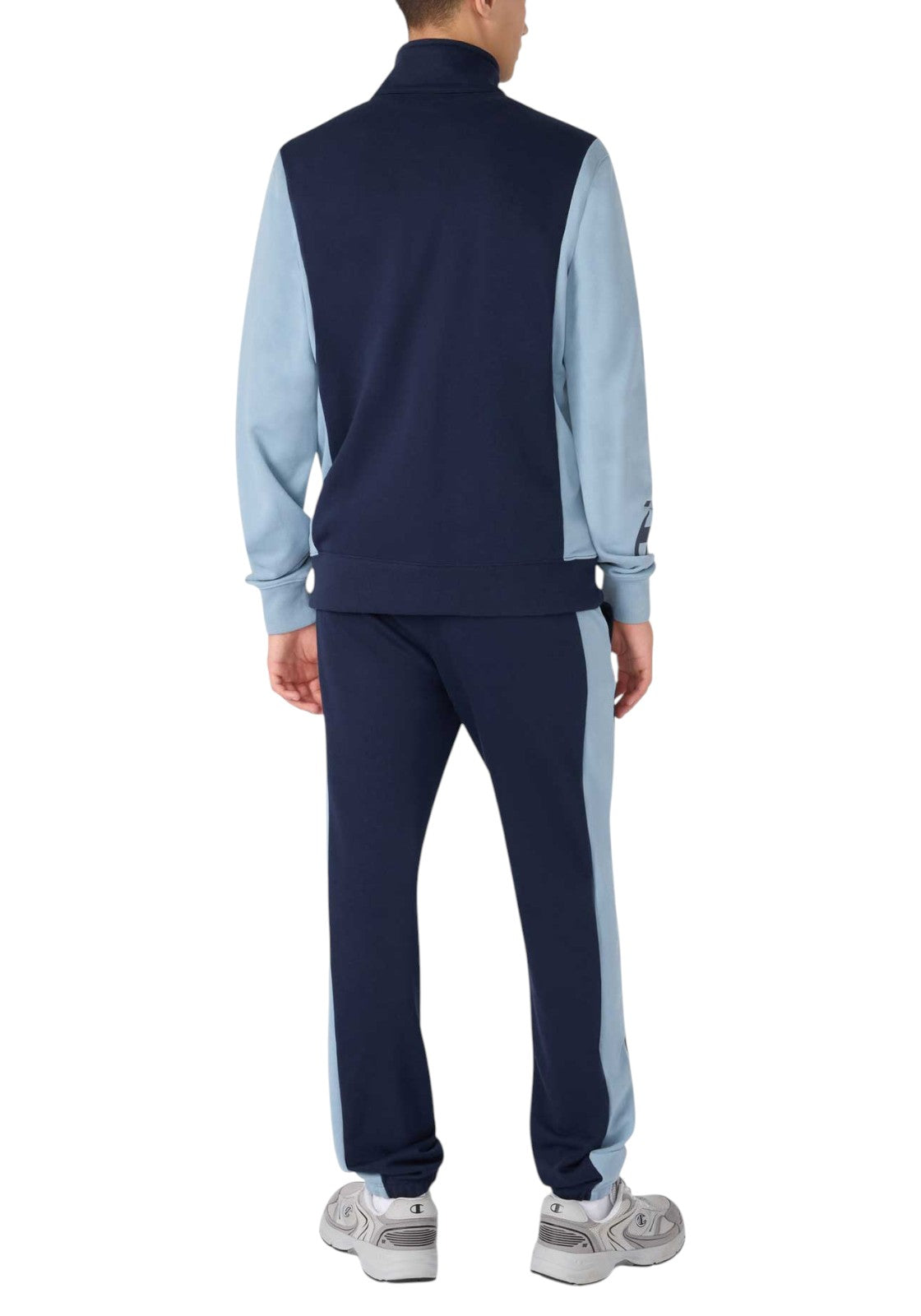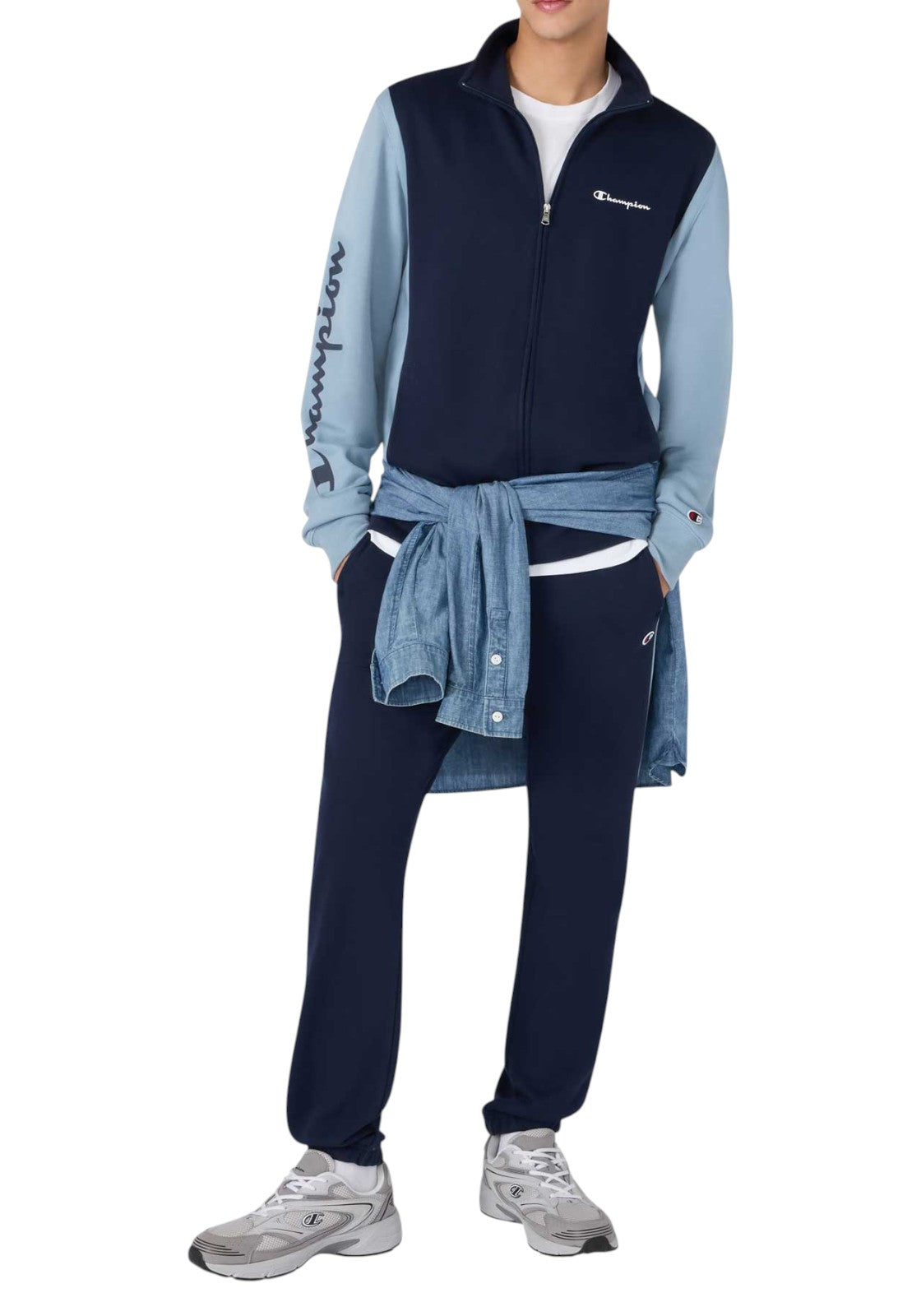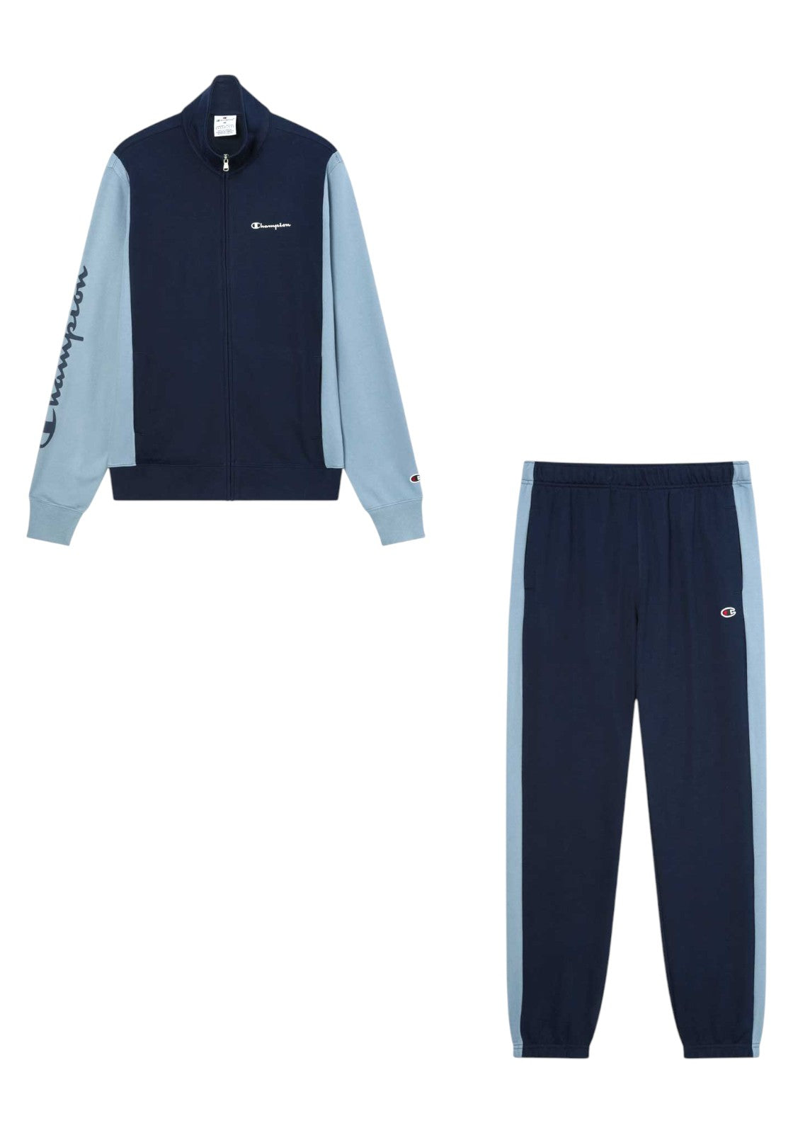 Tuta sportiva da uomo in cotone misto, composta da giacca con zip integrale e pantaloni coordinati. Design bicolore grigio e nero con logo Champion ricamato sul petto, sulla manica e sulla gamba. Morbida, confortevole e ideale per l’attività sportiva o il tempo libero.