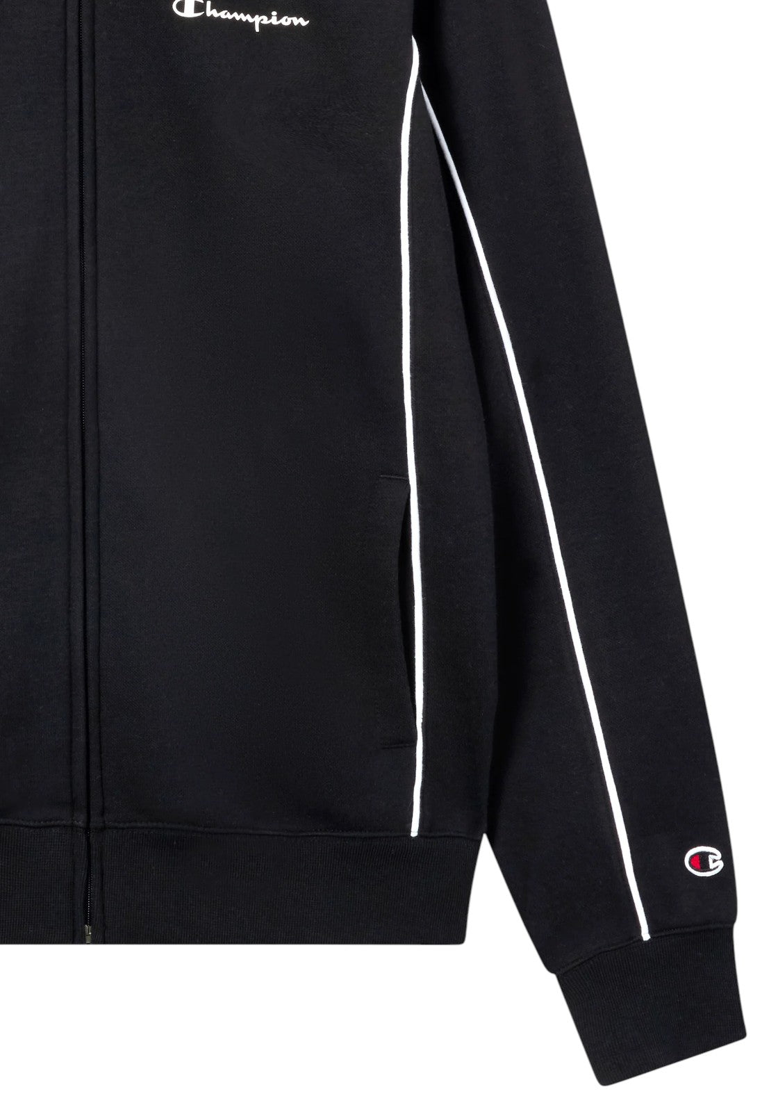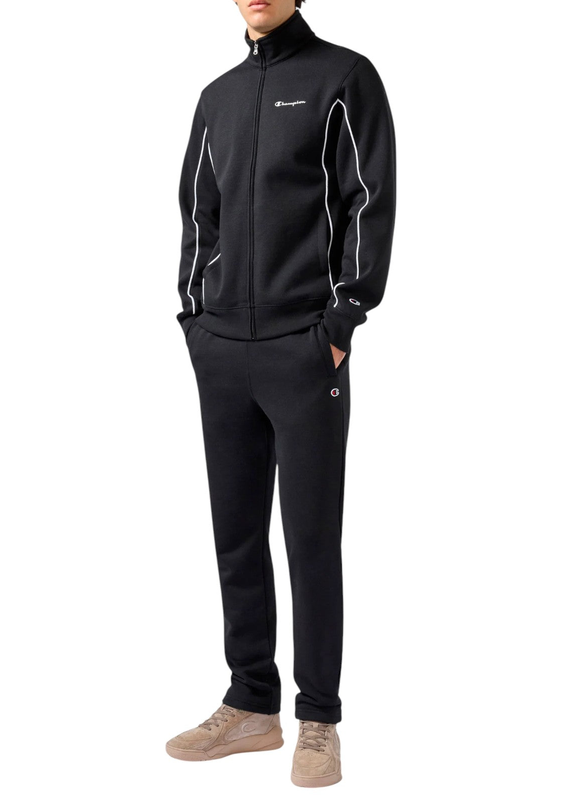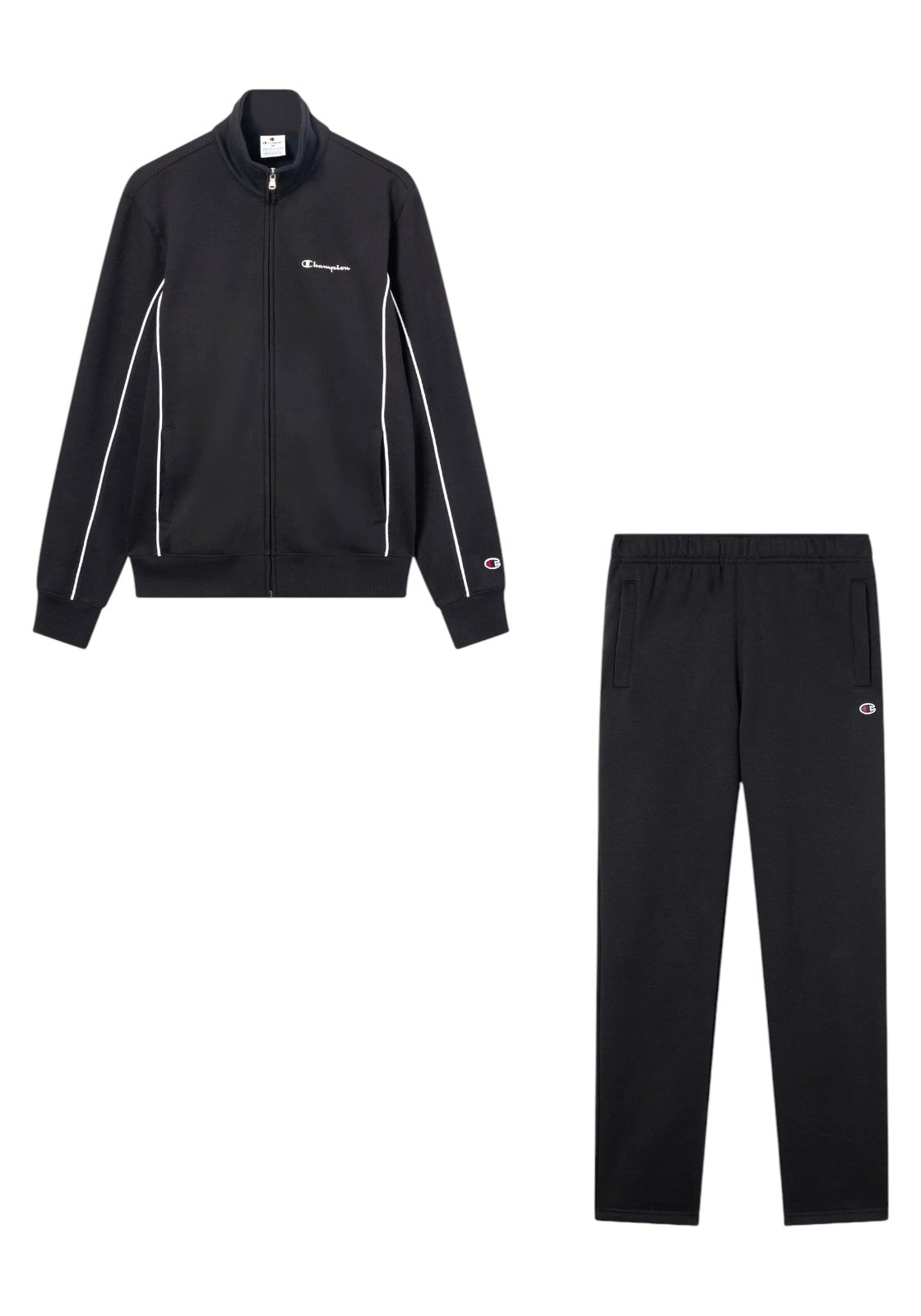 Tuta full zip da uomo in morbido fleece misto cotone, ideale per il relax quotidiano o per il tempo libero attivo. La felpa con zip integrale e il pantalone abbinato uniscono comfort e praticità, completati da un ricamo discreto del logo sul petto e sulla gamba. Un look essenziale e versatile per ogni giorno.