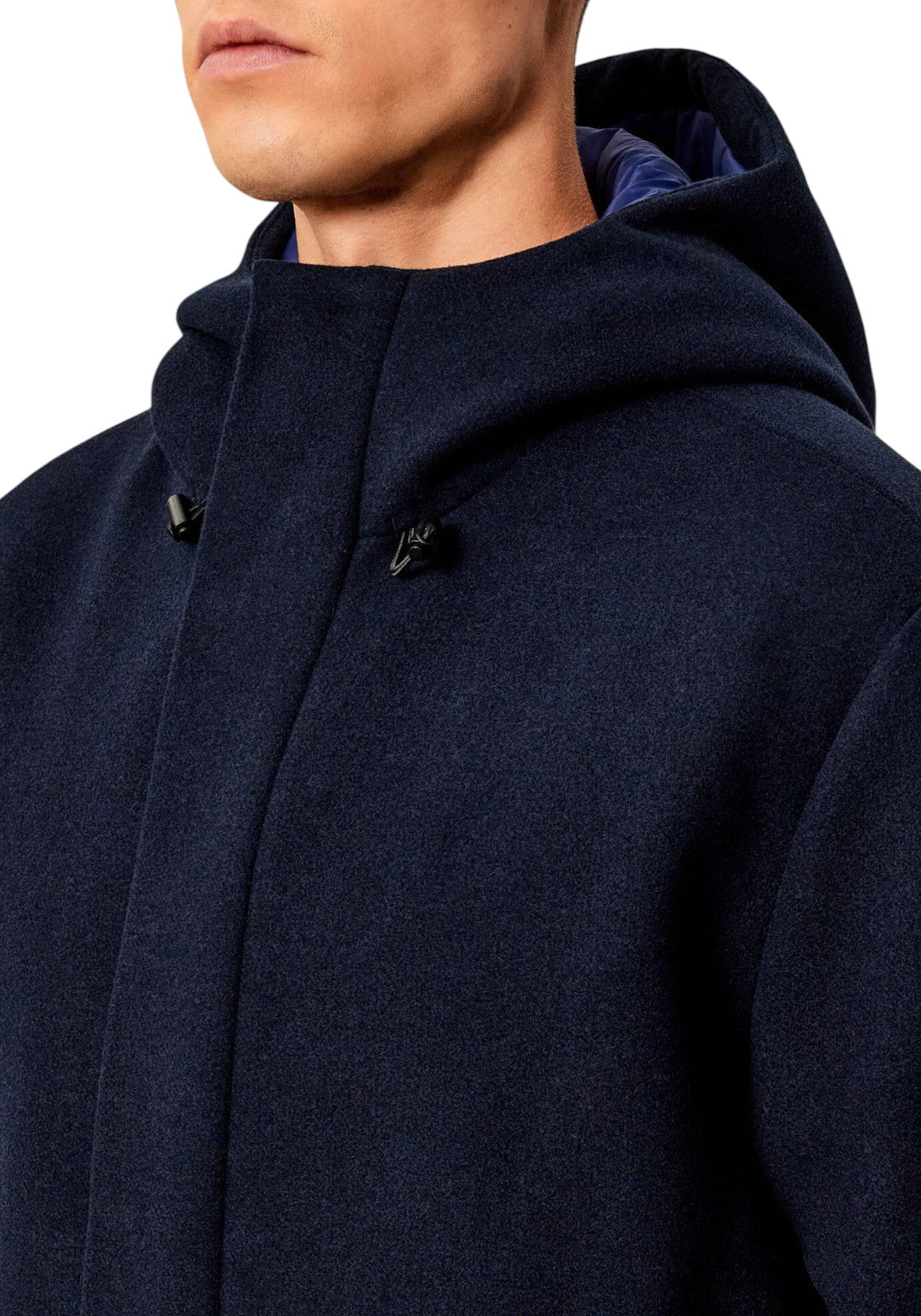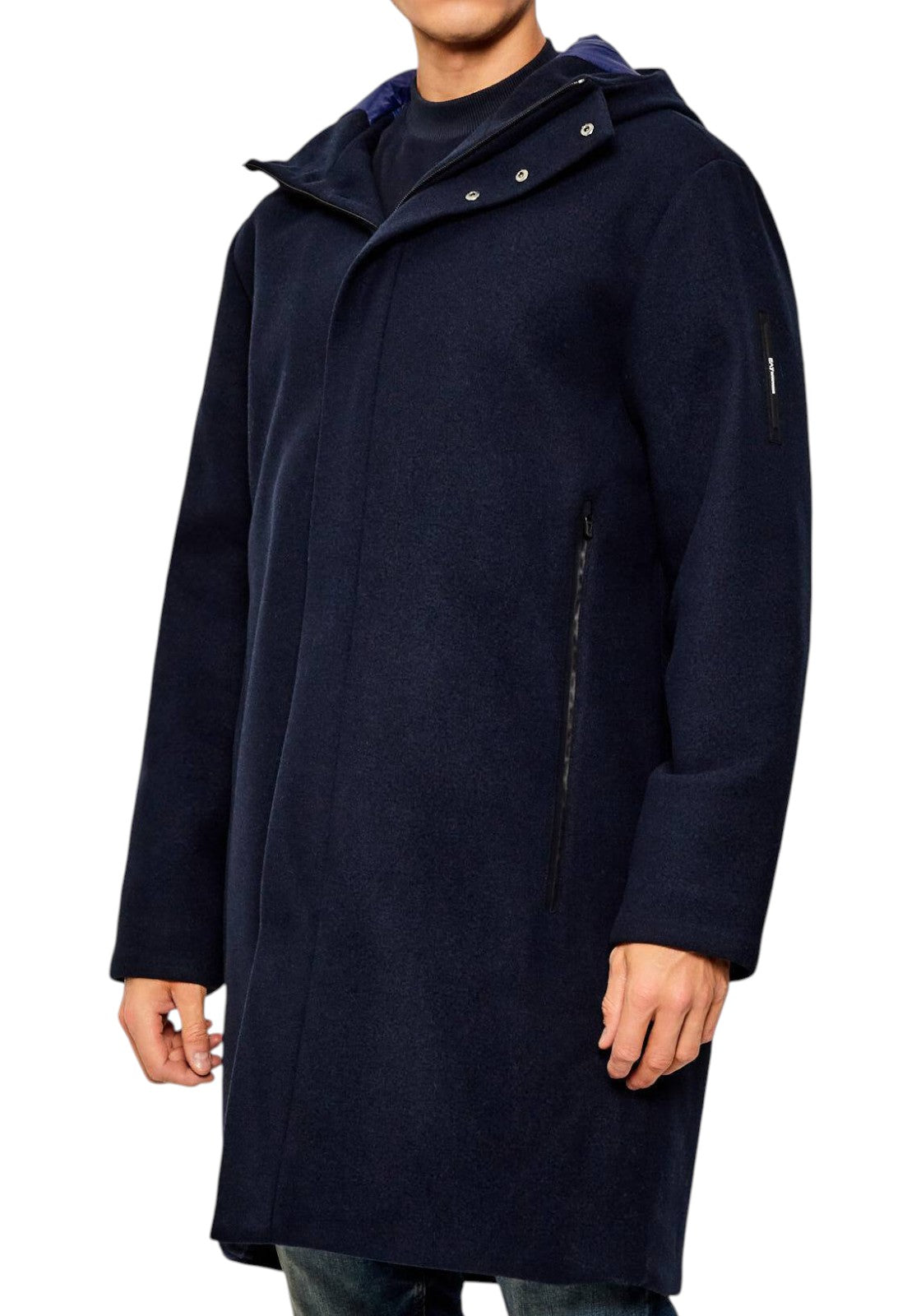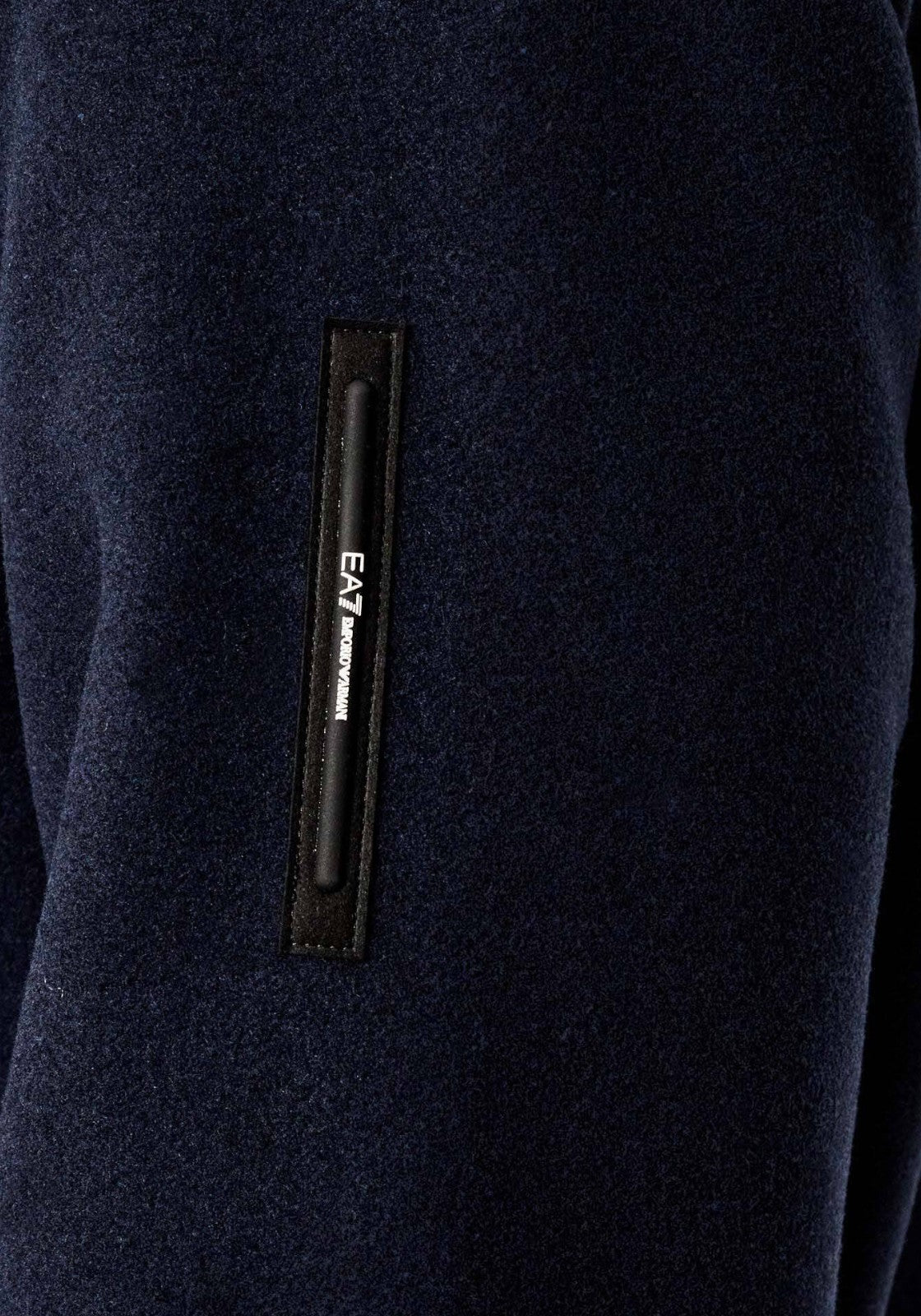 Cappotto urbano dal taglio pulito con cappuccio regolabile, chiusura a zip coperta e tasche con zip. Realizzato in panno misto lana, unisce calore ed eleganza quotidiana con discreti dettagli logati EA7.