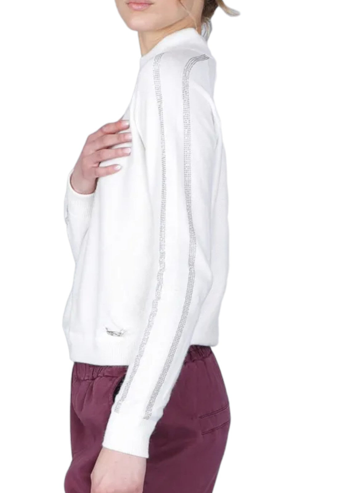 Maglia con collo alto e maniche raglan realizzata in morbido filato mistolana. impreziosita da un motivo di strass sulle maniche per un look casual chic. vestibilità regolare.